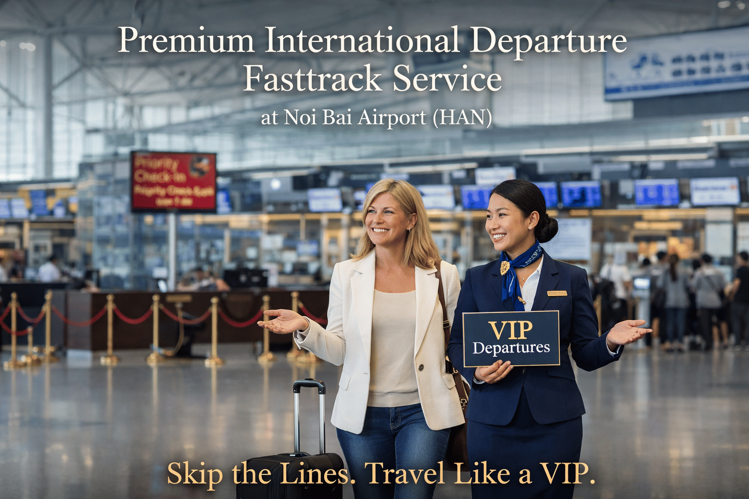 Skip the queues at Noi Bai Airport (HAN) with Vietnam Fast Track Service. Meet & assist, priority immigration support, and seamless guidance from arrival to exit—designed for a faster, hassle-free travel experience.
