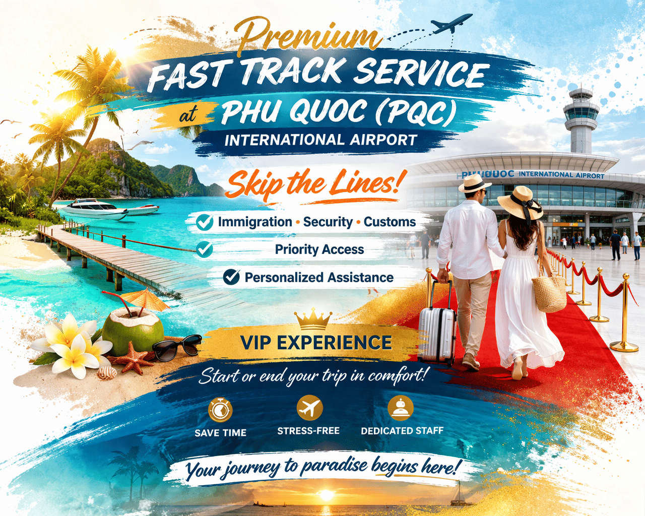 Skip the queues at Phu Quoc (PQC) with Vietnam Fast Track Service. Meet & assist, priority immigration support, and seamless guidance from arrival to exit—designed for a faster, hassle-free travel experience.